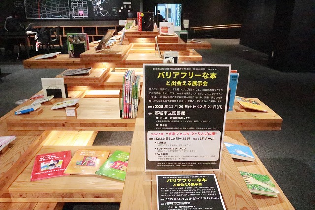 | 詳細 | ●1F 展示台 都城市立図書館が所蔵する障がいに関する絵本や児童書、LLブックなどの展示 ●1Fホール 市内施設ボックス 点字図書館が所蔵する点字図書、Lサイズ点字、触図、UV点字などの展示 |