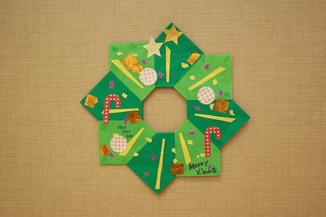 | 内容 | 図書館スタッフによる工作会です。 今回は折り紙で「クリスマスリース」をつくります。 ※はさみを使います。 |