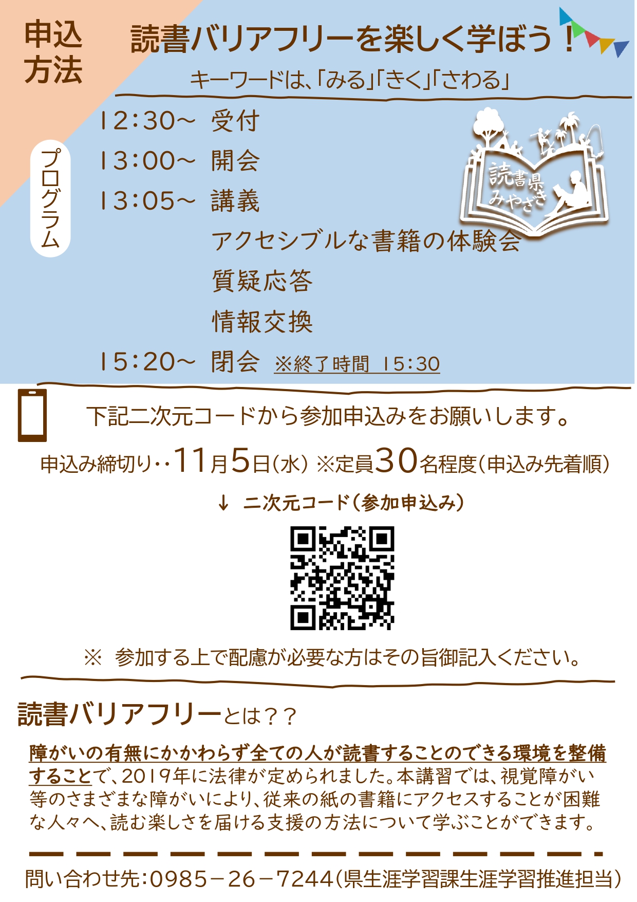 問い合わせ先 | 県生涯学習課生涯学習担当 0985-26-7244 |