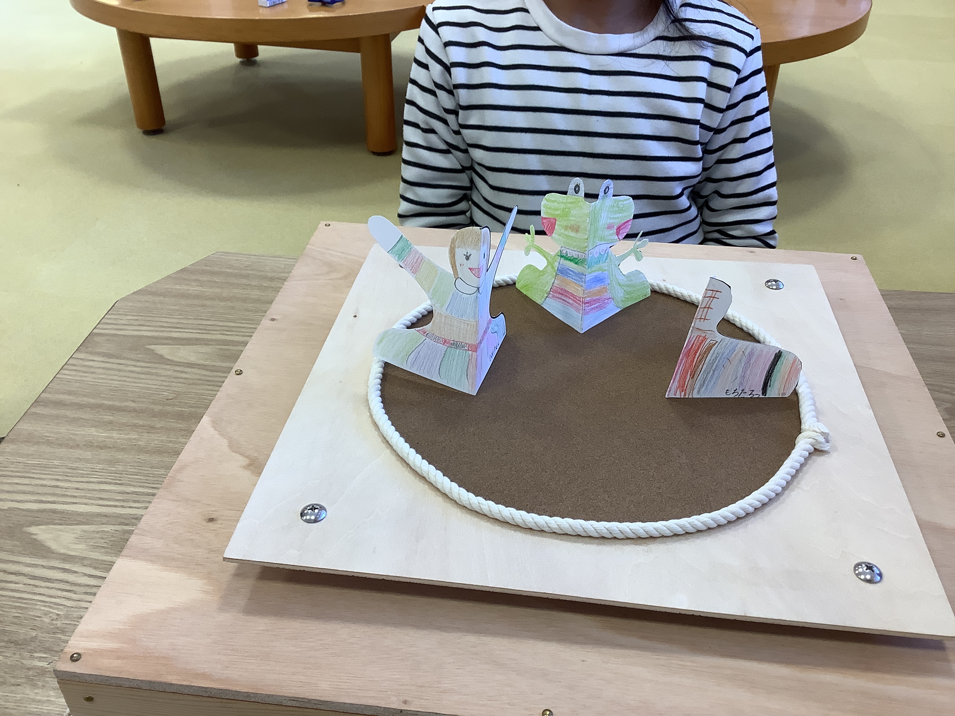 | 内容 | 紙に絵を描いて、切って、おすもうさんを作ります。 お友達の作ったおすもうさんと土俵の上でいざ!はっけよーい! どっちが勝つかな?みんなと対戦して、楽しい時間をすごそう。 ※ハサミを使用します |